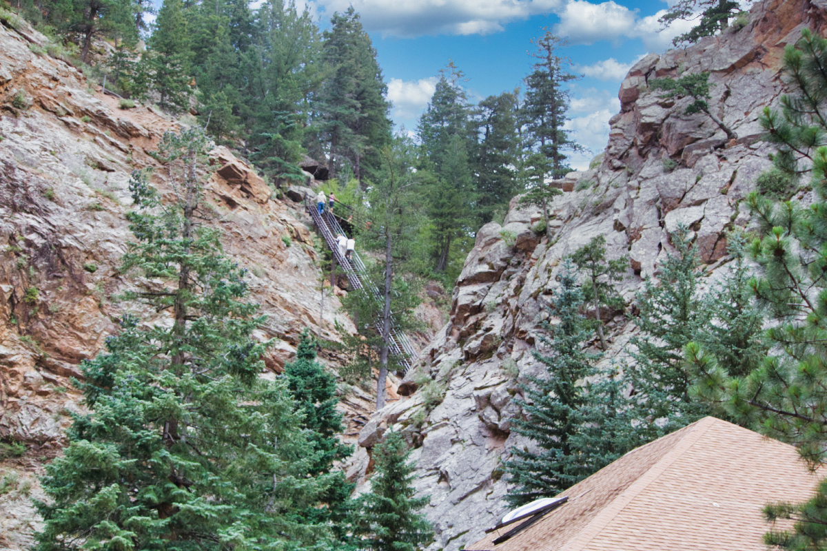The Broadmoor Seven Falls is a series of seven cascading waterfalls of South Cheyenne Creek in South Cheyenne Cañon, Colorado Springs, Colorado. It has been a privately-owned tourist attraction since it was opened in the early 1880s.